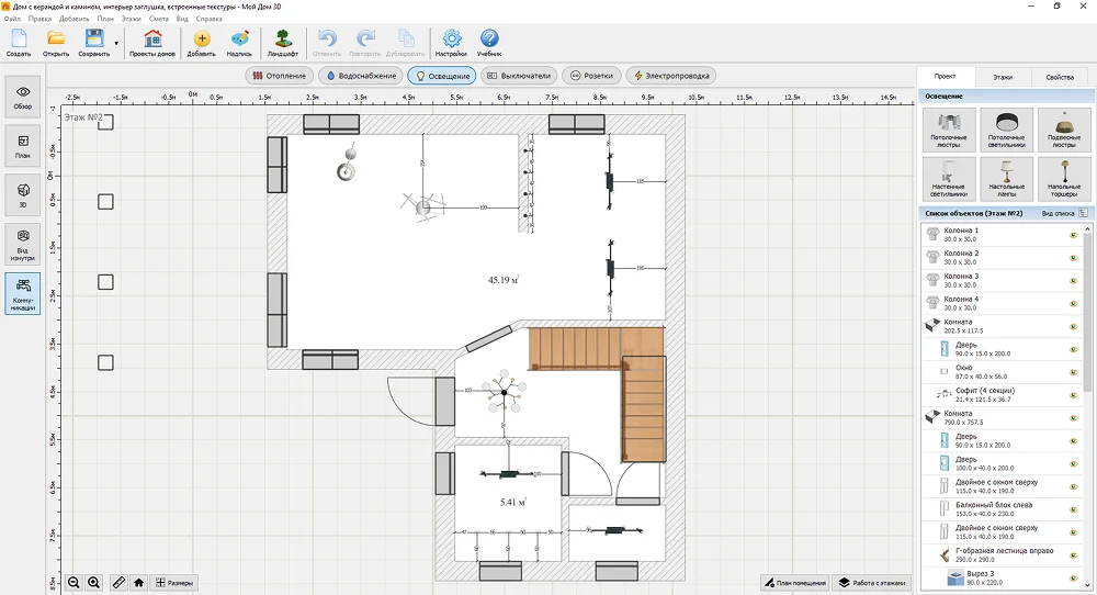 Хотите быстро и без больших усилий спроектировать уютное и безопасное жилье? Воспользуйтесь простой программой Мой Дом 3D! Планируйте удобное расположение выключателей, грамотно размещайте розетки, чтобы подключать торшеры и лампы без удлинителей. Создавайте световые сценарии для разных комнат и оцените эффект, совершив виртуальную прогулку по комнатам.