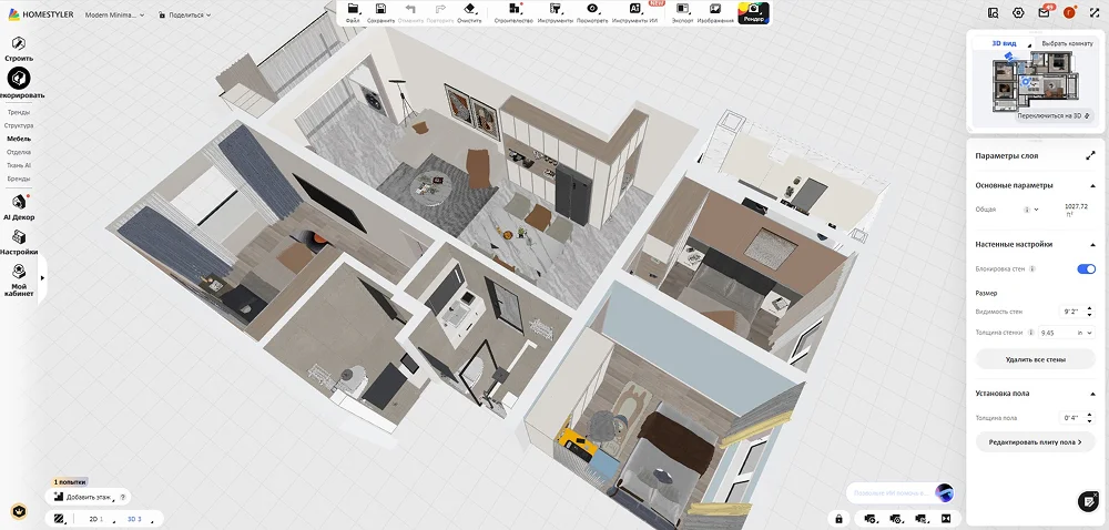 - AI-ассистент создает варианты декора на основе выбранного стиля;