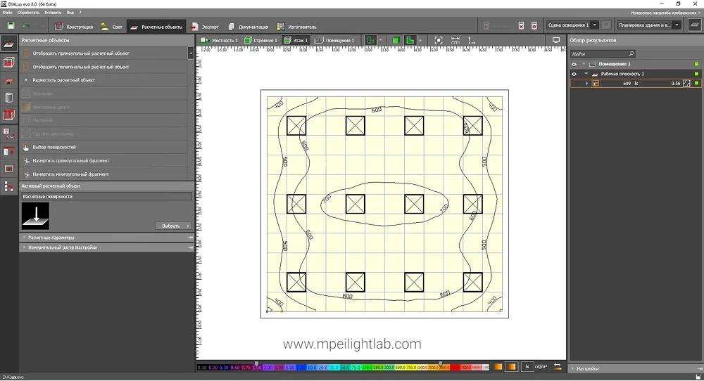 - Библиотеки светильников от ведущих производителей с готовыми фотометрическими данными;