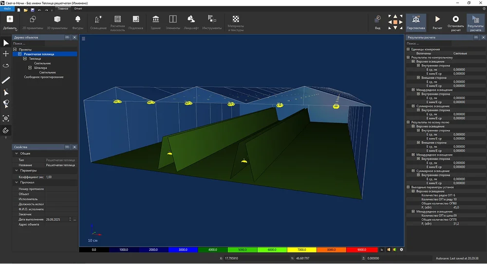 - есть встроенная функция проверки на соответствие нормам освещения по российским ГОСТам и СНиПам.