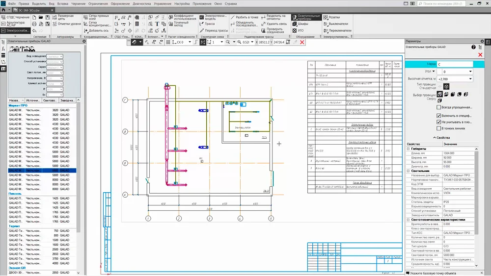 Специализированное ПО от компании АСКОН предназначено для подготовки документации в области электроснабжения бытовых и промышленных объектов. Позволяет выполнять комплексные проекты, включающие структурирование кабельных связей и полную информационную базу об оборудовании. Программа расчета освещенности упрощает выбор светильников и размещение оборудования.