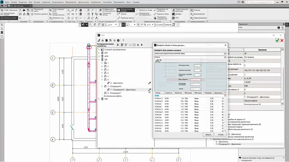 - можно проектировать схемы электроснабжения с добавлением шкафов и щитового оборудования;