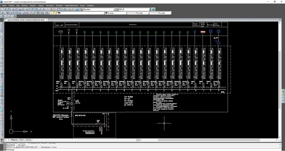 Отечественная САПР-платформа с поддержкой российских стандартов строительного и архитектурного проектирования (ЕСКД и СПДС). Позволяет создавать точные чертежи промышленных и жилых объектов, разрабатывать электрокоммуникационные схемы. Правда, в стандартной версии использовать nanoCAD как программу для расчета освещенности не получится – нужно установить дополнительный модуль «BIM Электро».