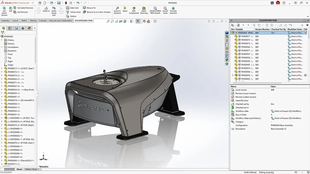 В данном случае название и вид программы САПР говорят сами за себя. SolidWorks — это система твердотельного («solid») моделирования, ориентированная на машиностроительное проектирование и промышленный дизайн. Софт специализируется на работе со сложными сборками из тысяч компонентов. Уникальное преимущество программного пакета — технология Concurrent Engineering, позволяющая нескольким специалистам работать над проектом одновременно.