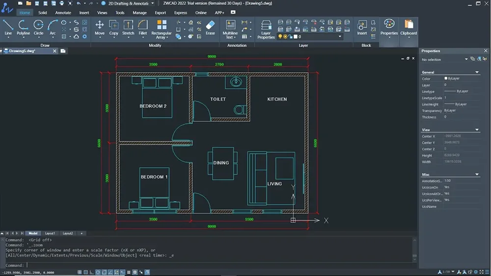 ZWCAD — это универсальная программа для черчения и подготовки 3D-моделей. Разработчики позиционируют ее как аналог AutoCAD, поэтому создали максимально похожий интерфейс. Кроме того, они предусмотрели работу с файлами DWG, благодаря чему проекты можно беспрепятственно перемещать между средами.